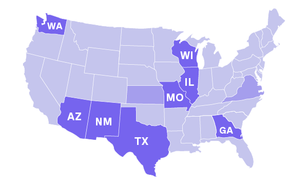We are currently operating in Arizona, Georgia, Illinois, Texas, Missouri, New Mexico, Washington State and Wisconsin. Exciting things are in motion as we're gearing up to spread our wings to California in the near future. Stay tuned!